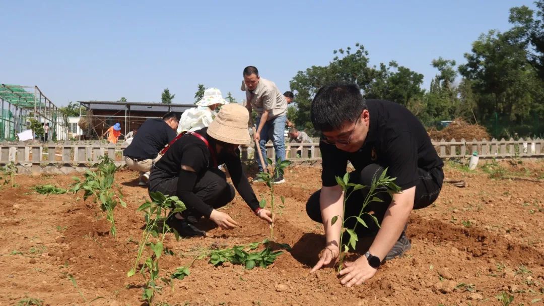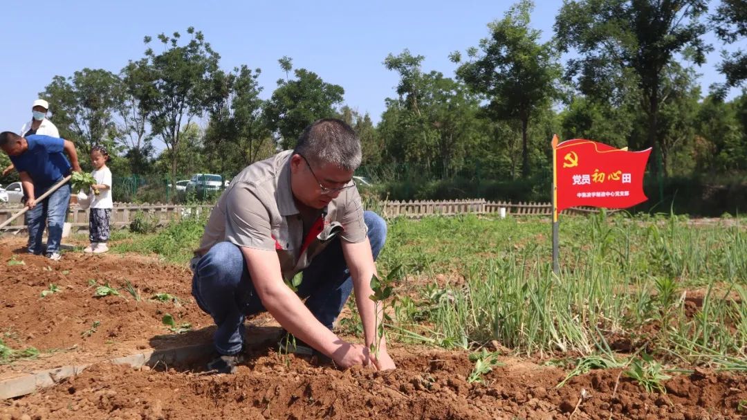 同志們分工協(xié)作,在有經(jīng)驗(yàn)的老同志指導(dǎo)和示范下,依次開(kāi)展松土、起壟、插秧、澆水、培土等工作。汗水滴灑在泥土里,歡聲笑語(yǔ)回蕩在空氣中?;顒?dòng)中,還有不少黨員帶著孩子來(lái)到現(xiàn)場(chǎng),讓祖國(guó)的下一代在了解種菜過(guò)程的同時(shí),體驗(yàn)勞動(dòng)果實(shí)的來(lái)之不易。